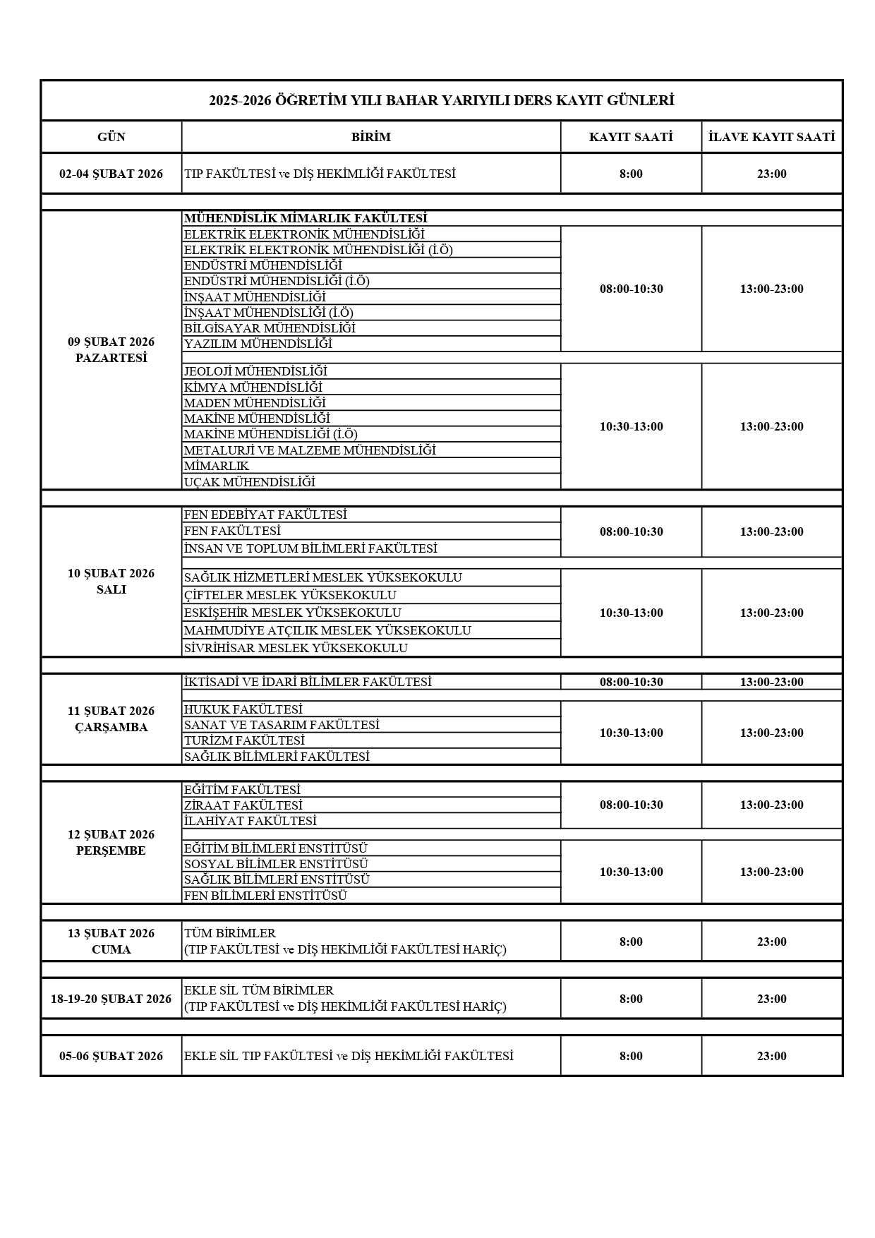2025-2026 Eğitim Öğretim Yılı Bahar Yarıyılı ders kayıtları hakkında bilgi almak için aşağıdaki linki tıklayınız.